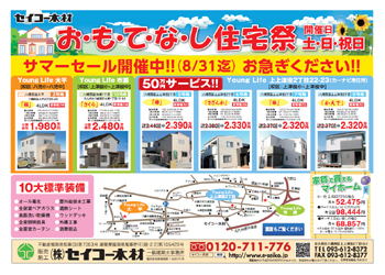 今週末の9月23、24、25日に馬場山緑・楠橋南・木屋瀬で住宅祭同時開催します!!