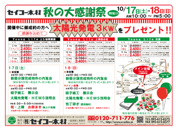 今週末の10月15、16日に馬場山緑・楠橋南・木屋瀬で住宅祭同時開催します!!